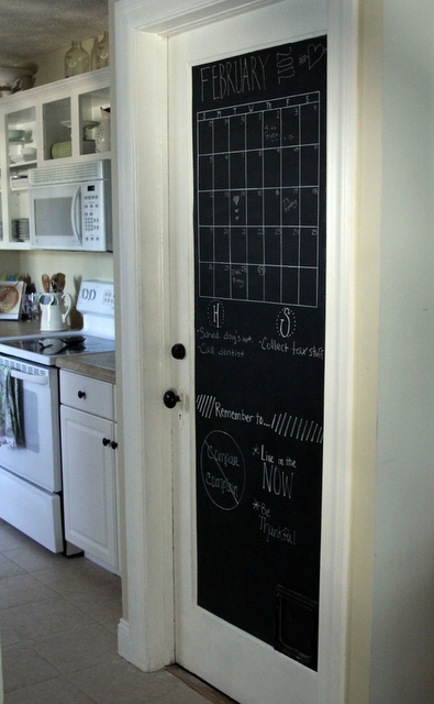 من بين الأفكار الجديدة للمطبخ عمل سبورة به، وكل ما تحتجه لهذا هو علبة من الطلاء الأسود المخصص للسبورة وهي طريقة غير مكلفة ورائعة للجدران، الأسود هو لون غامق وجذاب وخلفية مثالية لفن الطباشير المتغير باستمرار، إذا كنت خارج مساحة الجدار ، فإن سطح الباب أو الخزانة يمكن أن يكون سبورة رائعة، ويمكن استخدام هذه المساحة لكتابة الأغراض التي تنقصك أو كتابة ما تود تذكره، أو حتى بعض الوصفات.