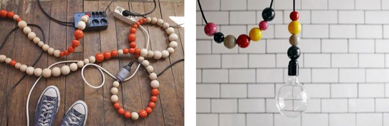 7) الفكرة السابعة عن طريق استخدام حبات الخرز الملونة مع الأسلاك الكهربائية ، وذلك لإضفاء جو من الإثارة والبهجة على الأسلاك من خلال إعطائها مظهر أكثر جاذبية وجمال.